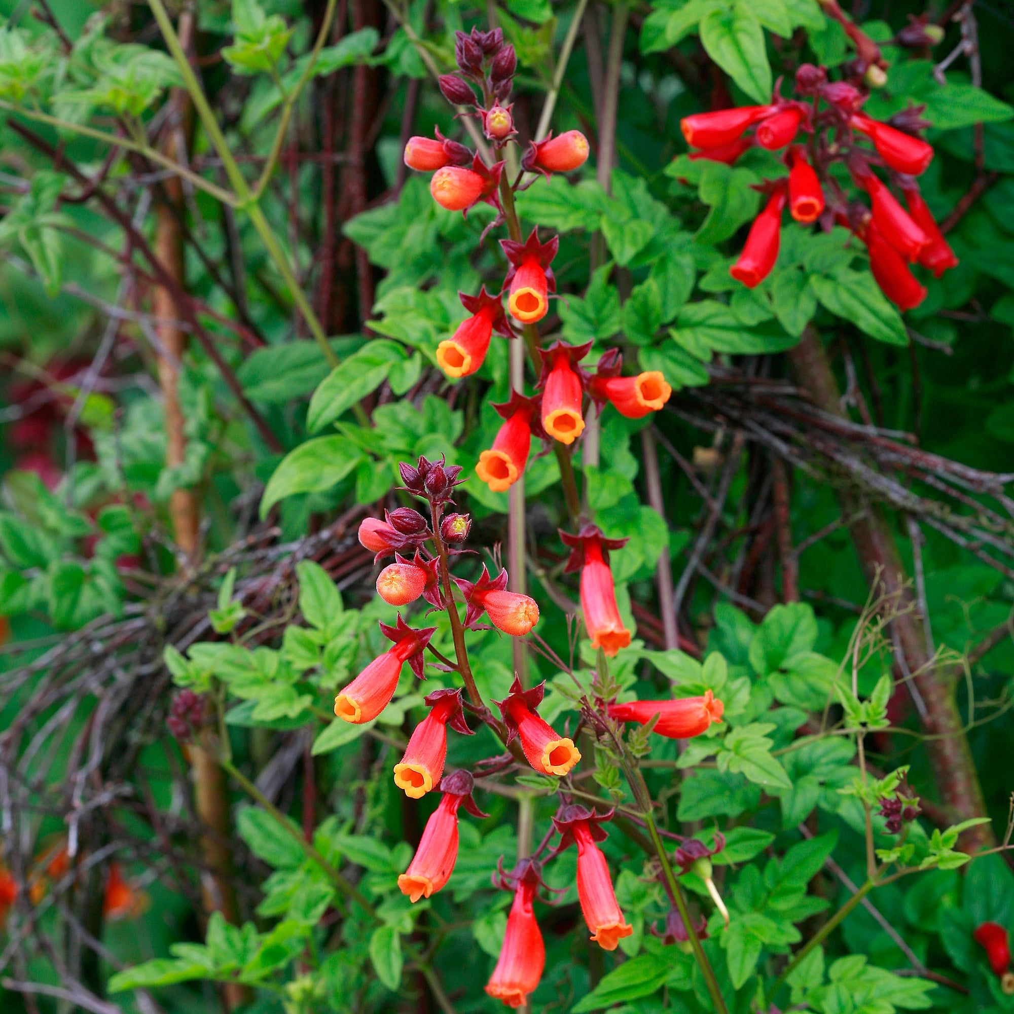 - 🌱 Fast-growing creeper vine with bright orange/red tubular flowers